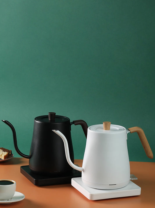 "THE POUR-PRO" Electric Goose Neck Kettle with Wooden Handle - Blanc